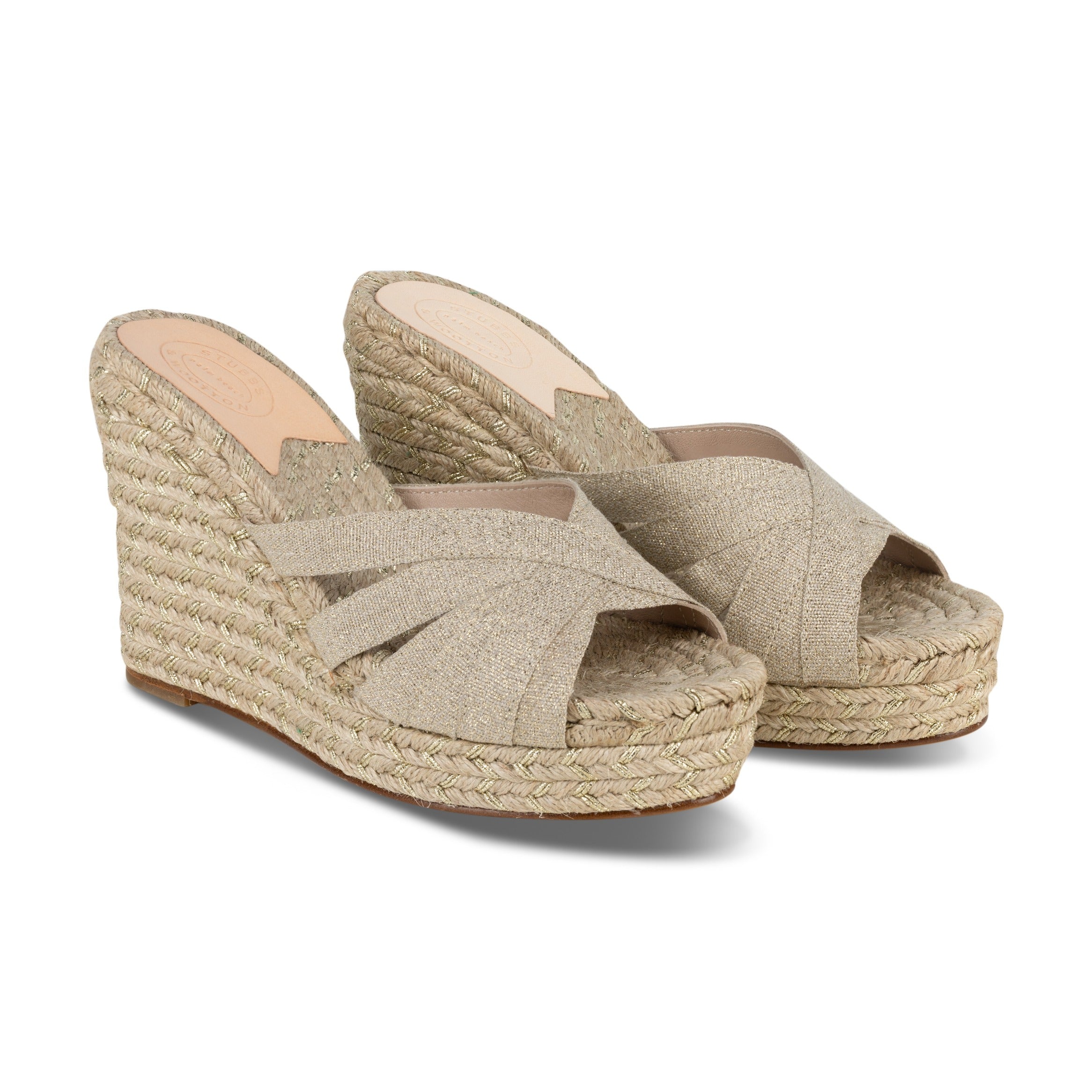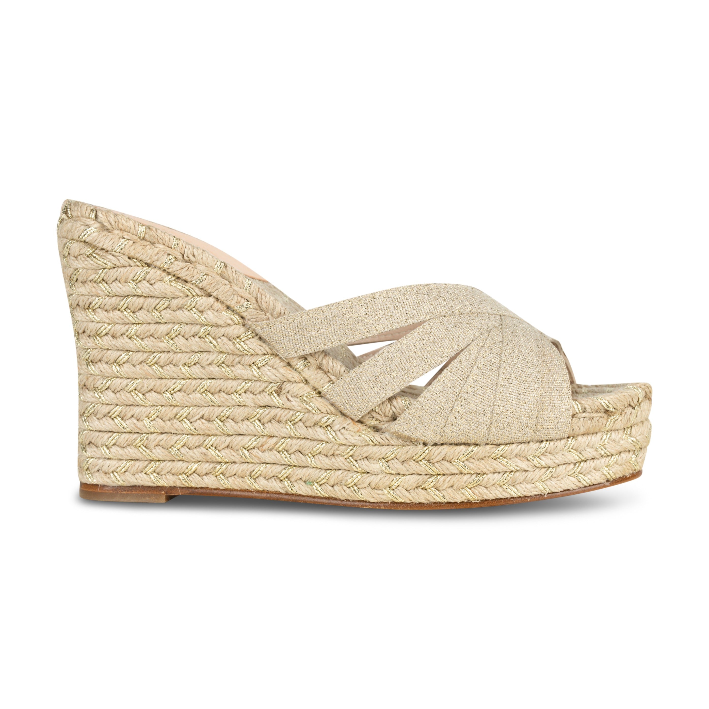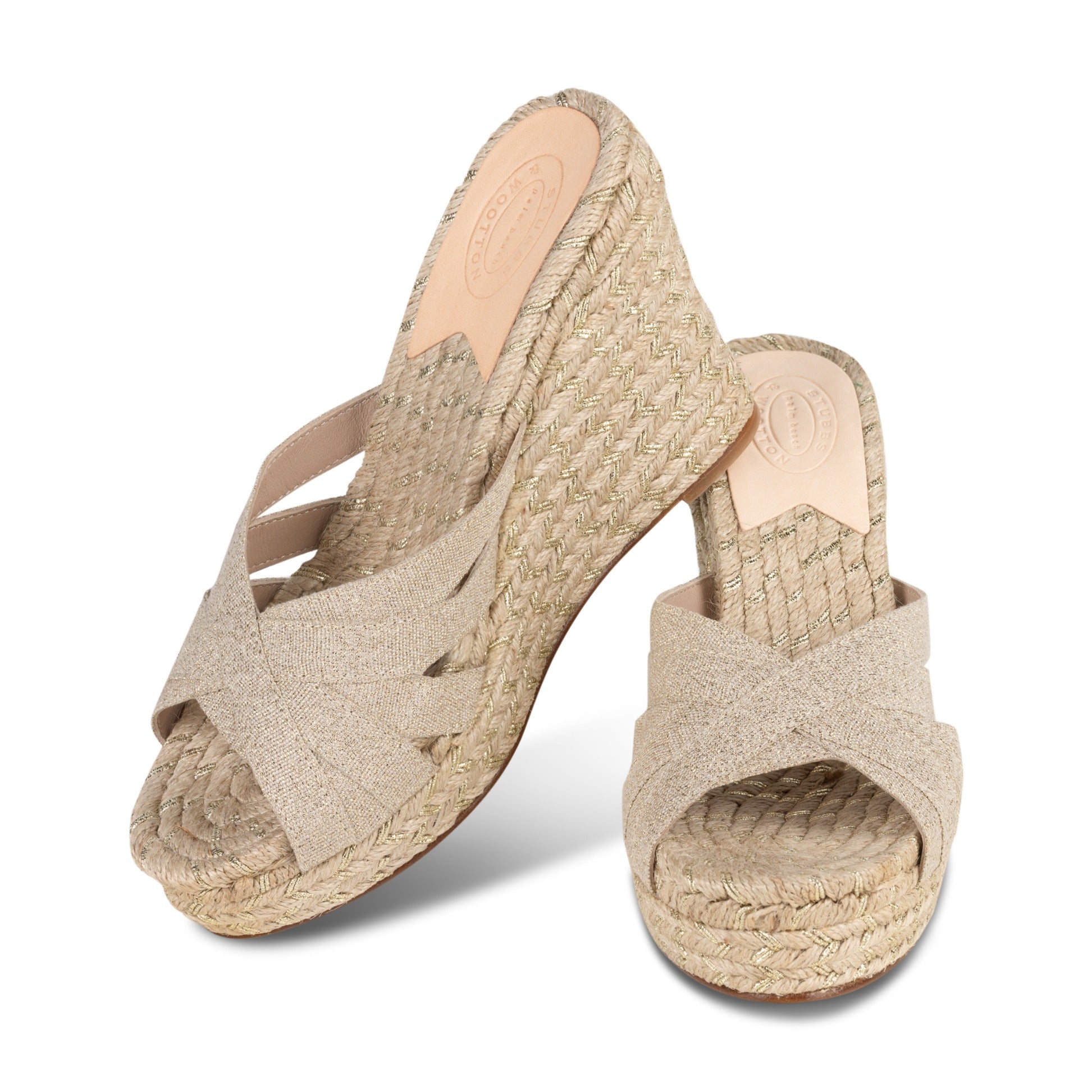 Our Gold Braid Grace Espadrille features a Gold Fleck Ribbon and Jute Sole.