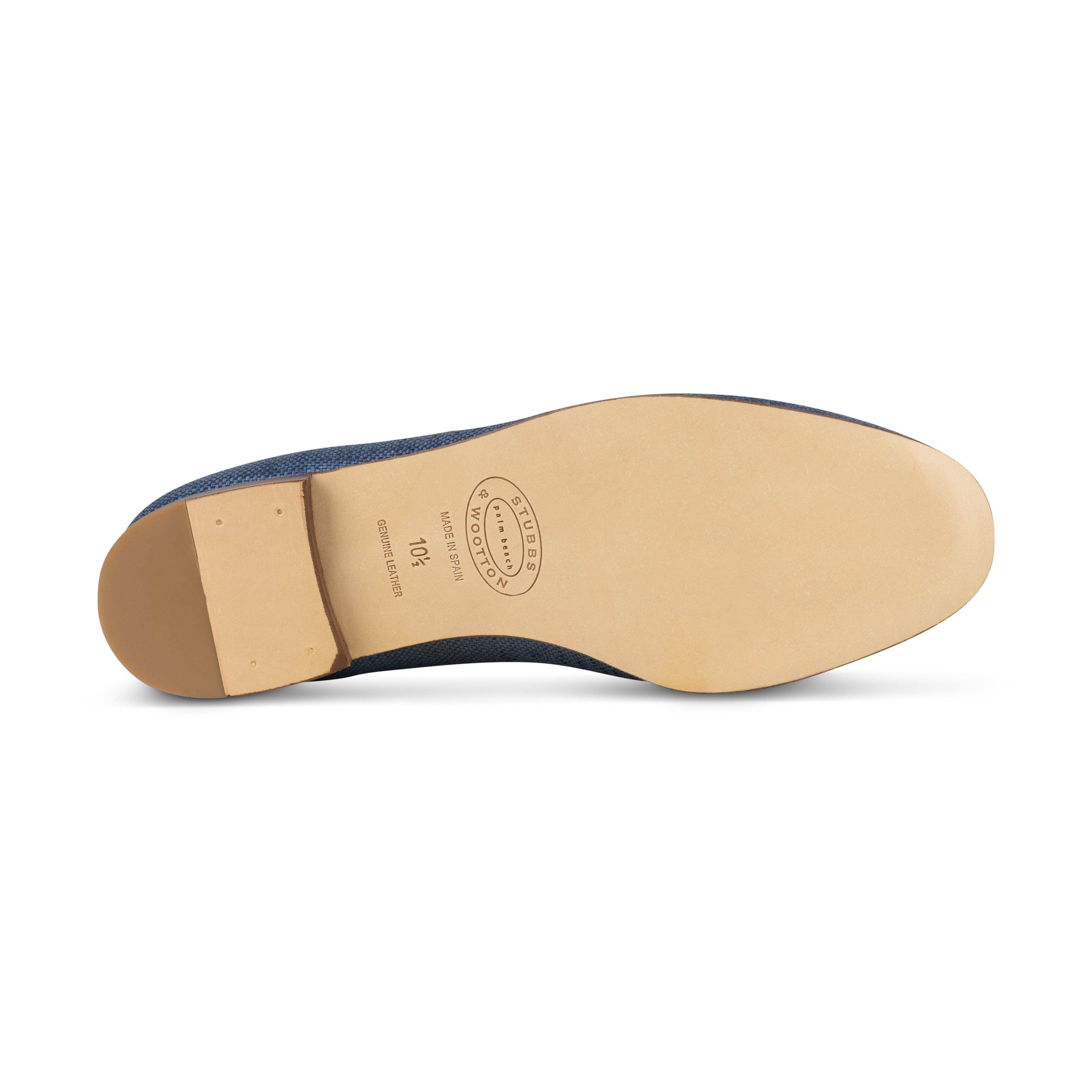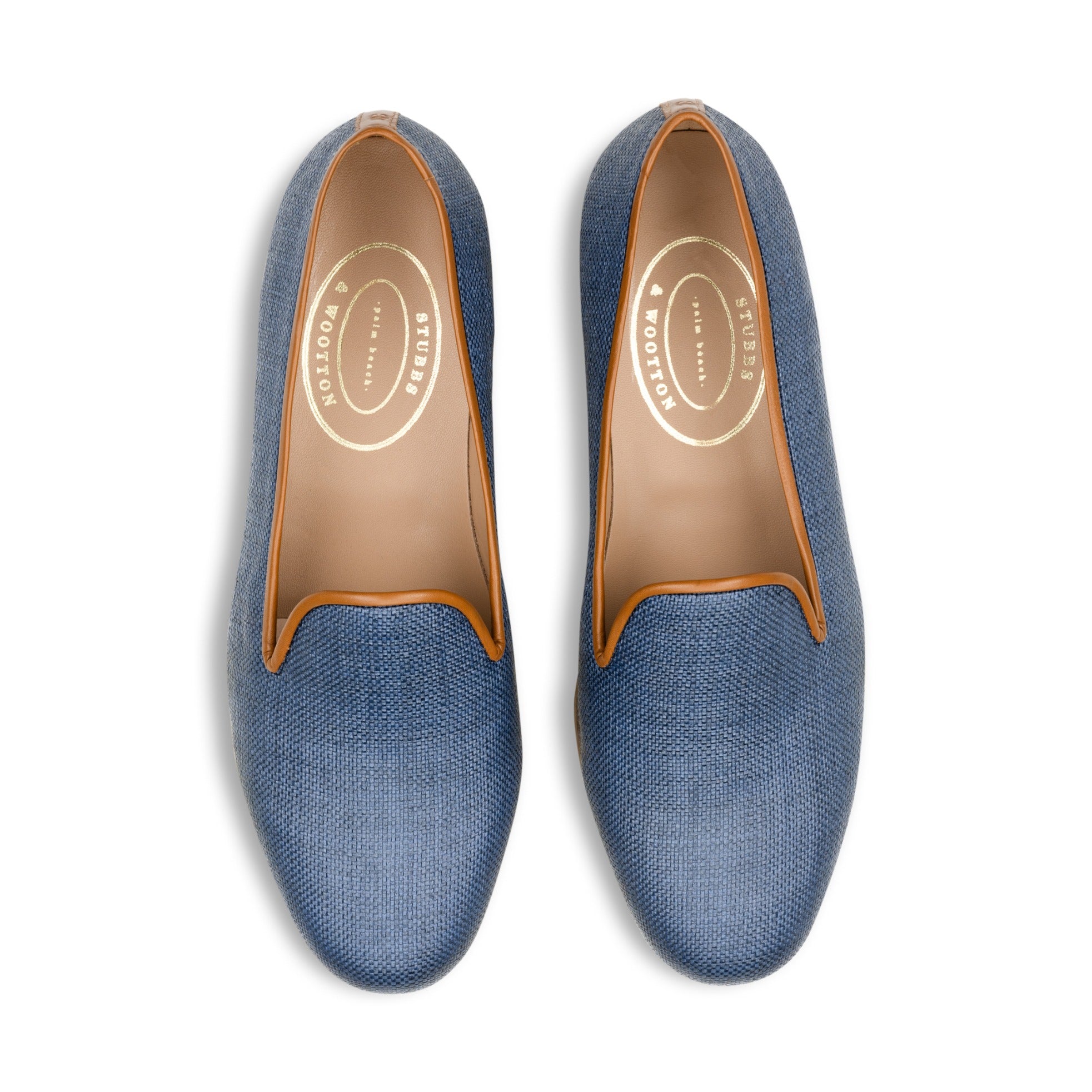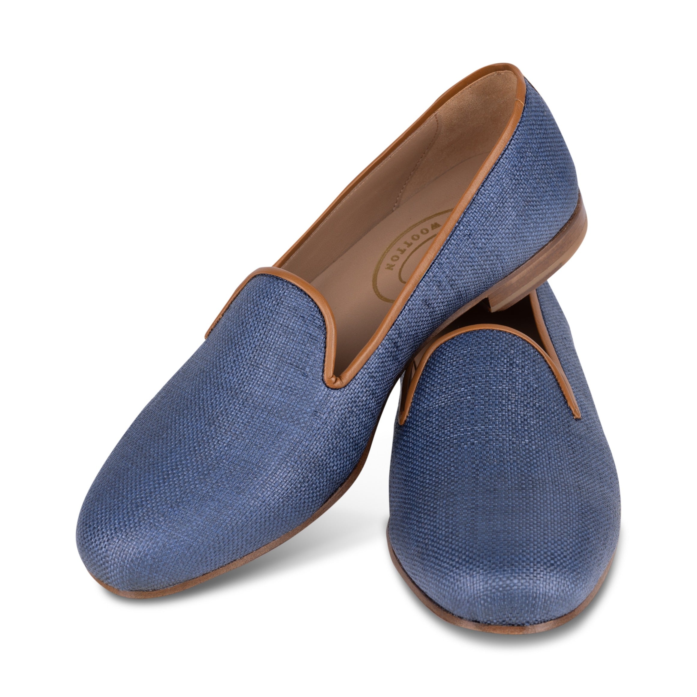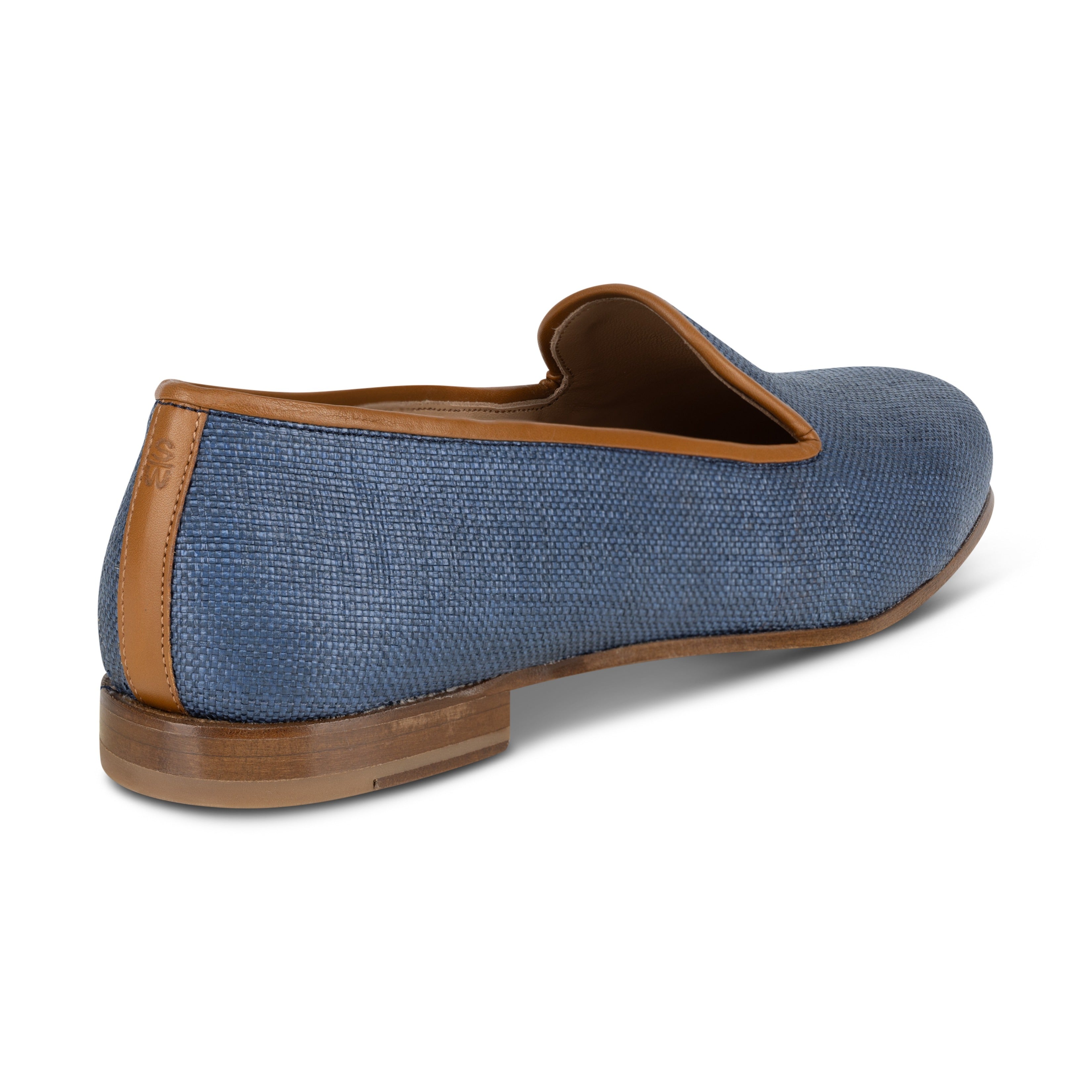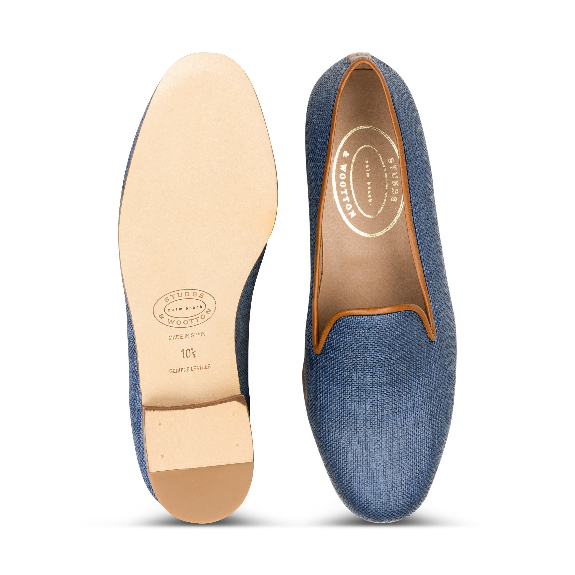 The panama slipper is crafted from panama woven fibers and finished with a soft leather trip.