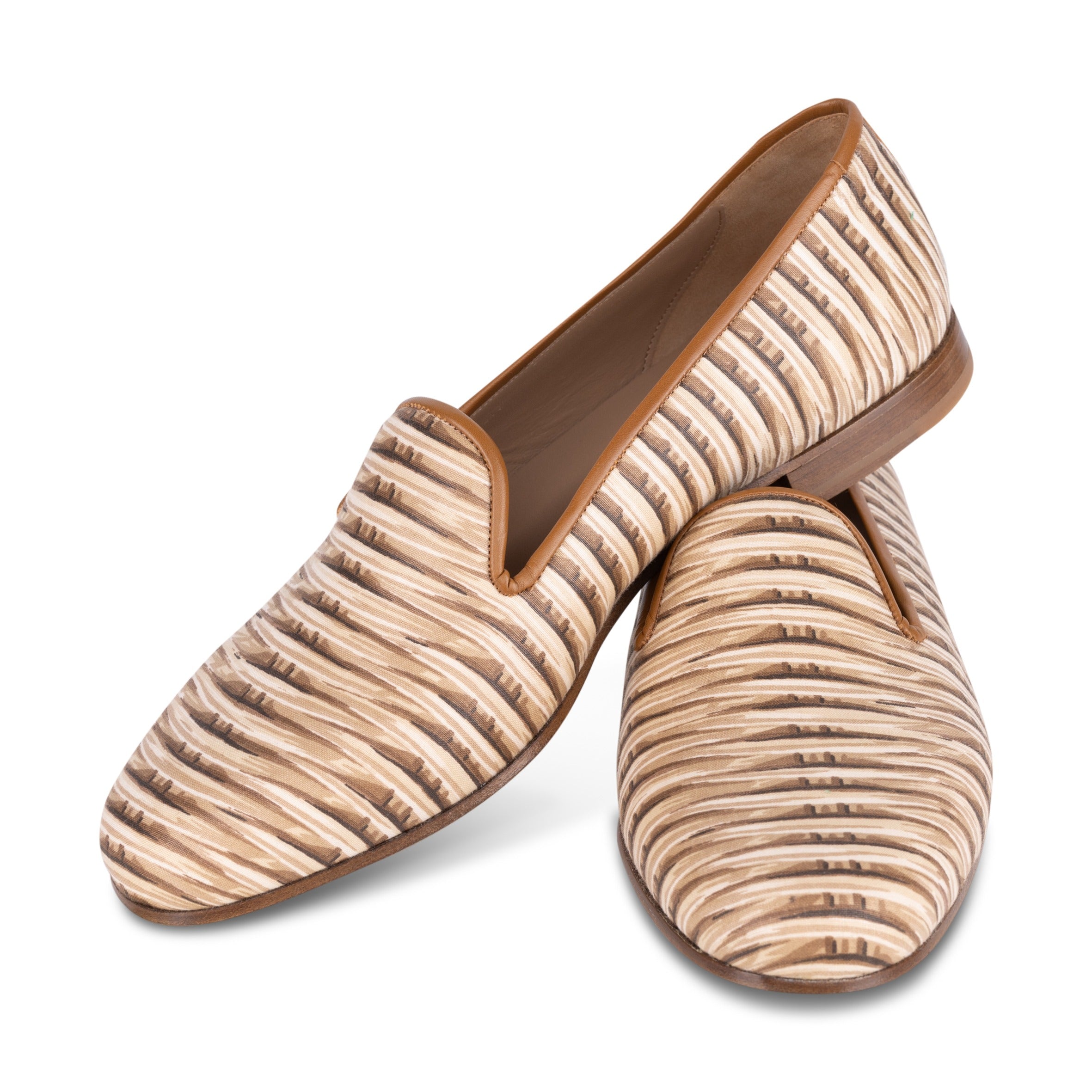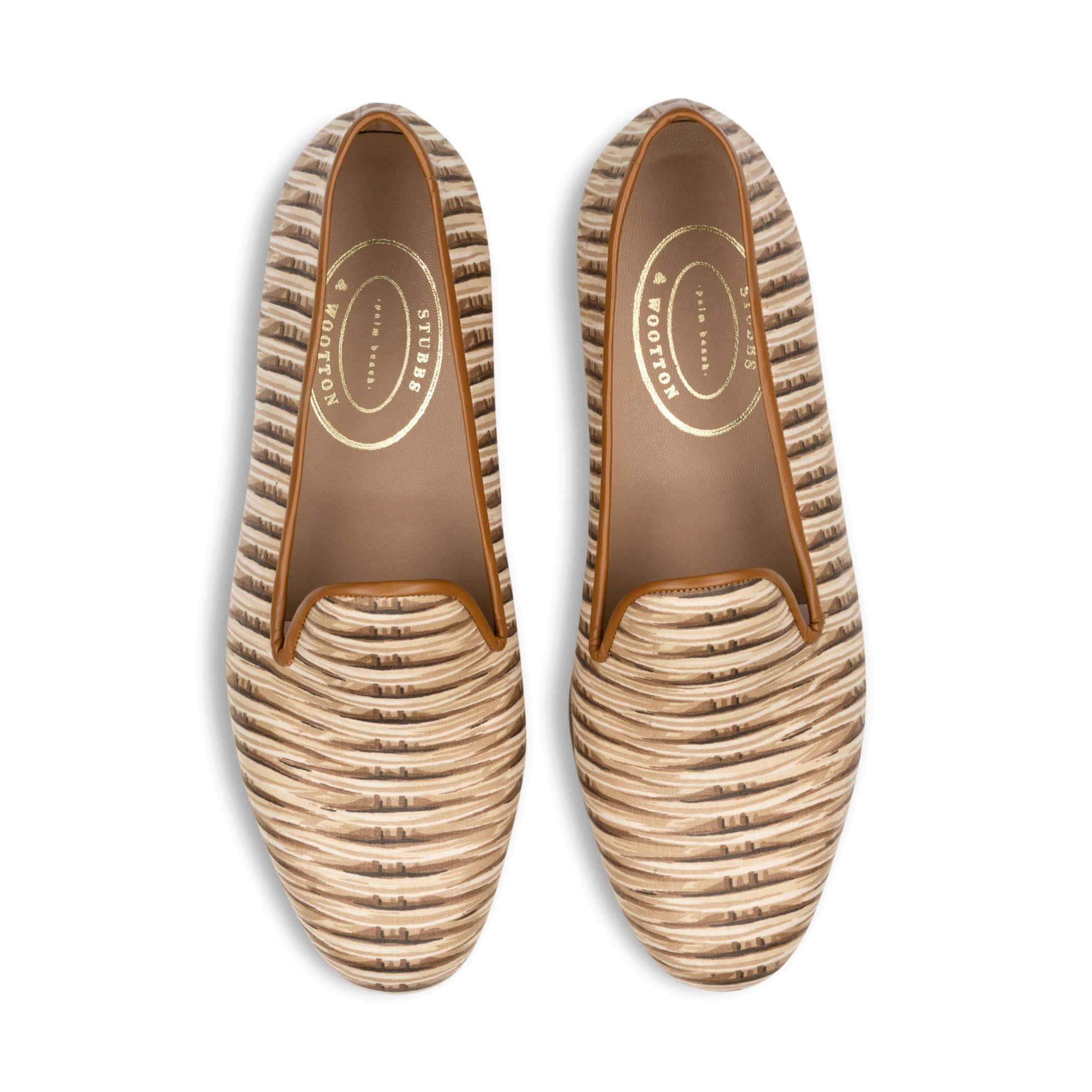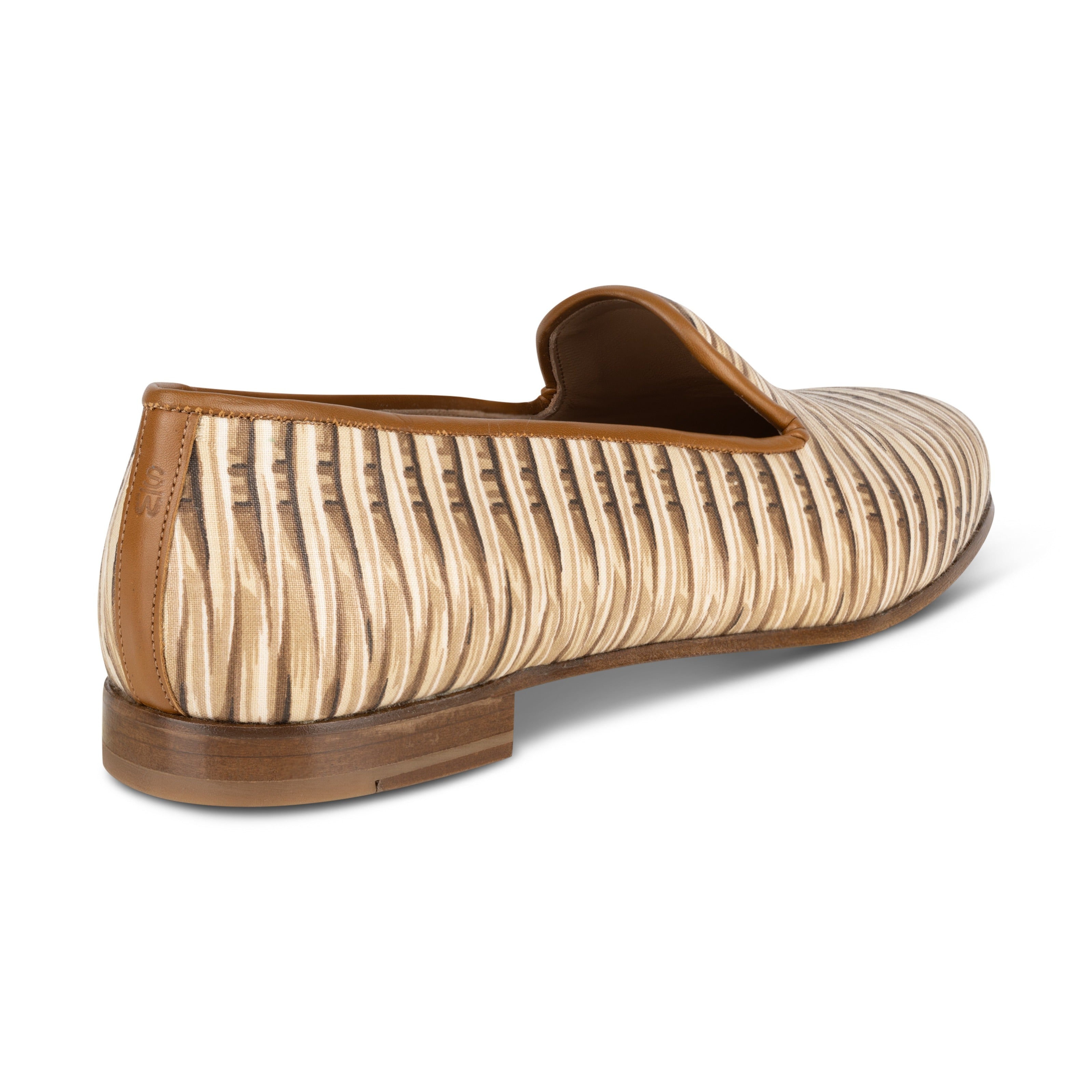 The wicker slipper is crafted from cotton canvas and finished with a soft leather trip.