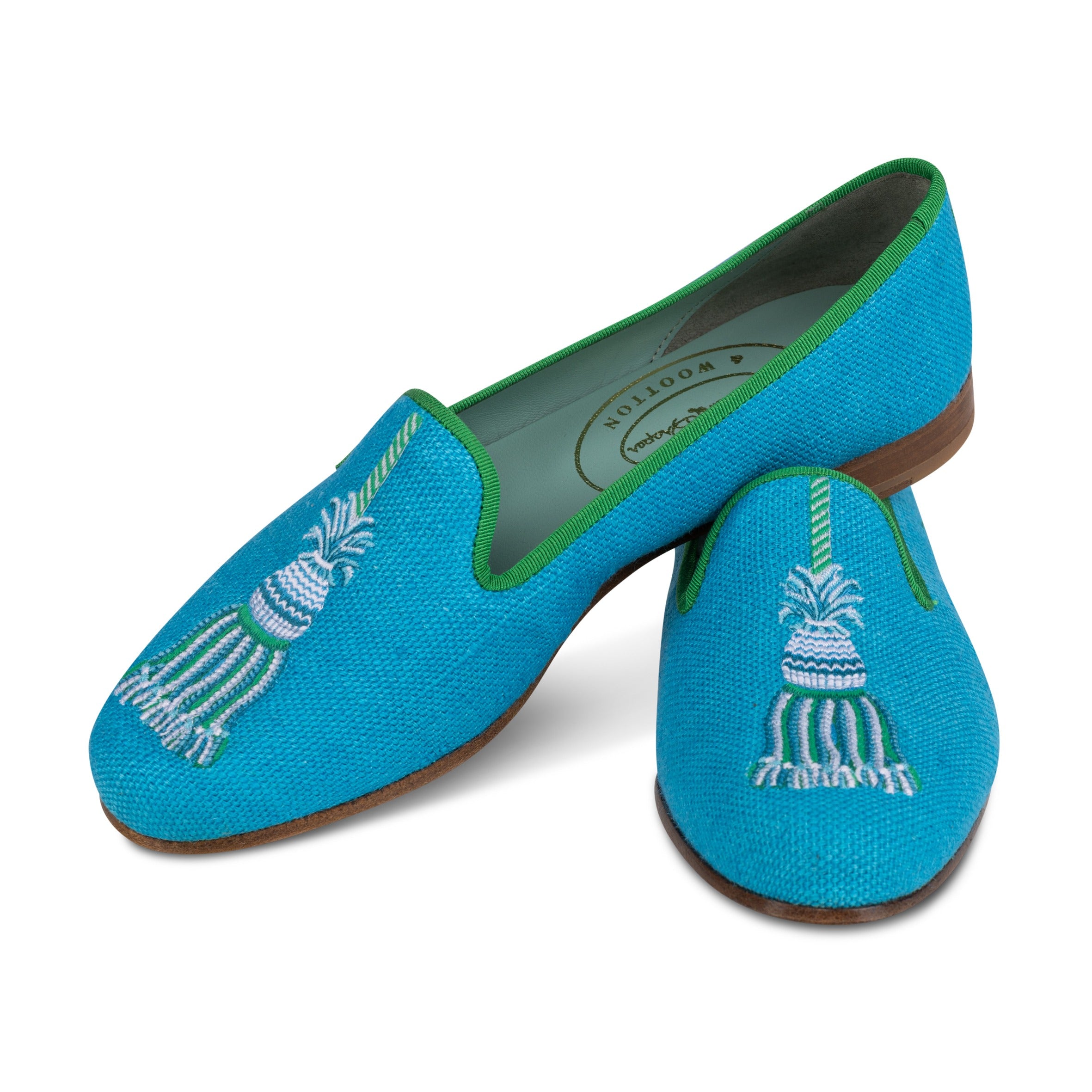 Our latest collaboration with Dorothy Draper features bold, iconic motifs in saturated, high-impact color.​ The Tassel Slipper is crafted from small-batch–dyed Italian linen and finished with dimensional Tassel embroidery, layered in varied techniques and hues to echo Draper's signature design.