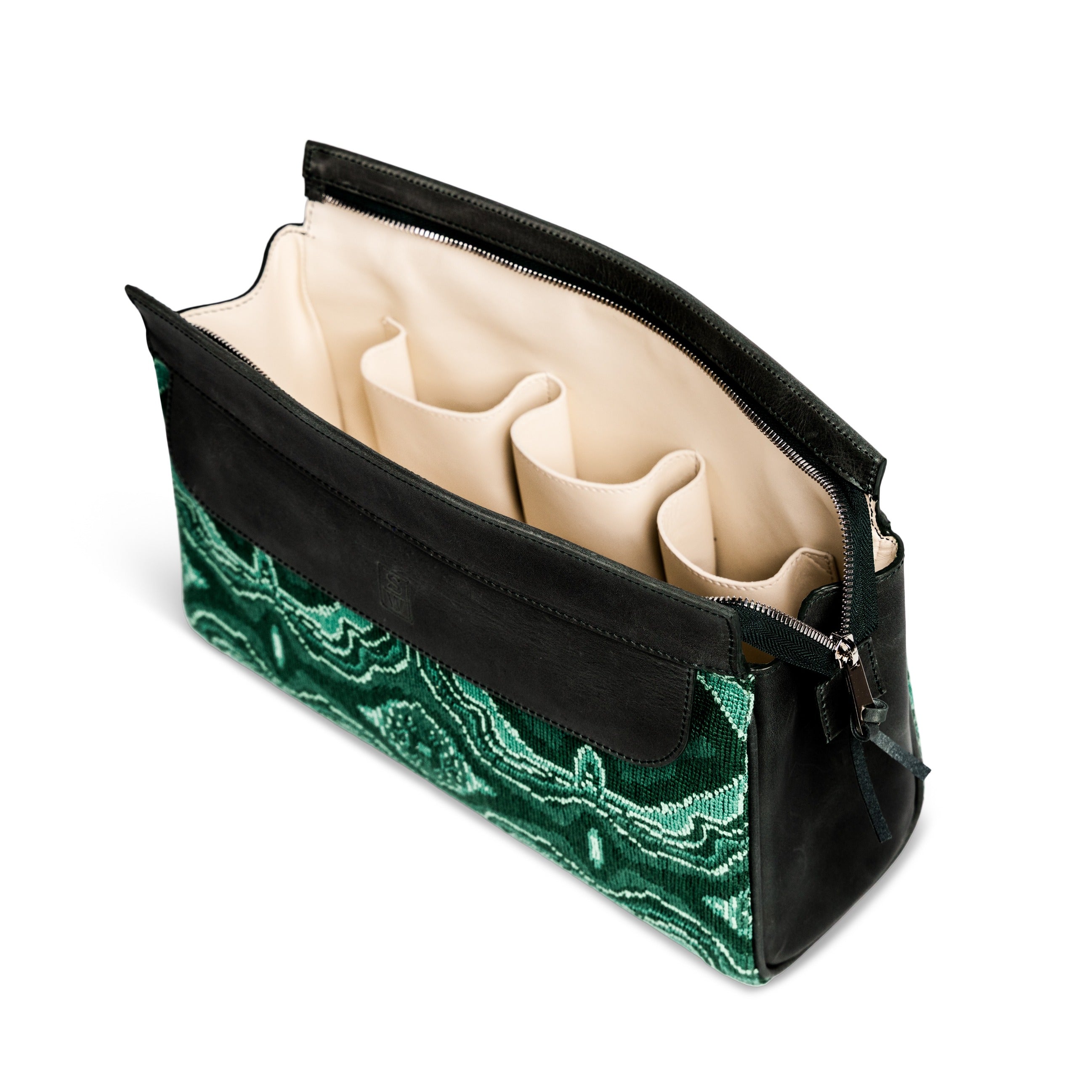 Our Malachite Needlepoint Traveler is the perfect companion for travelers who value both functionality and fashion. Crafted with meticulous attention to detail, this compact bag seamlessly blends versatility and elegance, ensuring that you can carry your essentials with ease and in style.