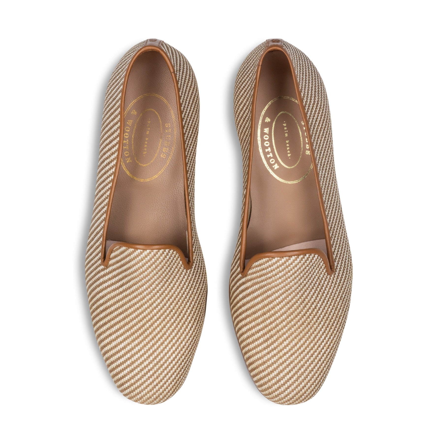 Our Straw Raffia Slipper features a Woven Natural Straw Upper with a Natural Leather Trim.