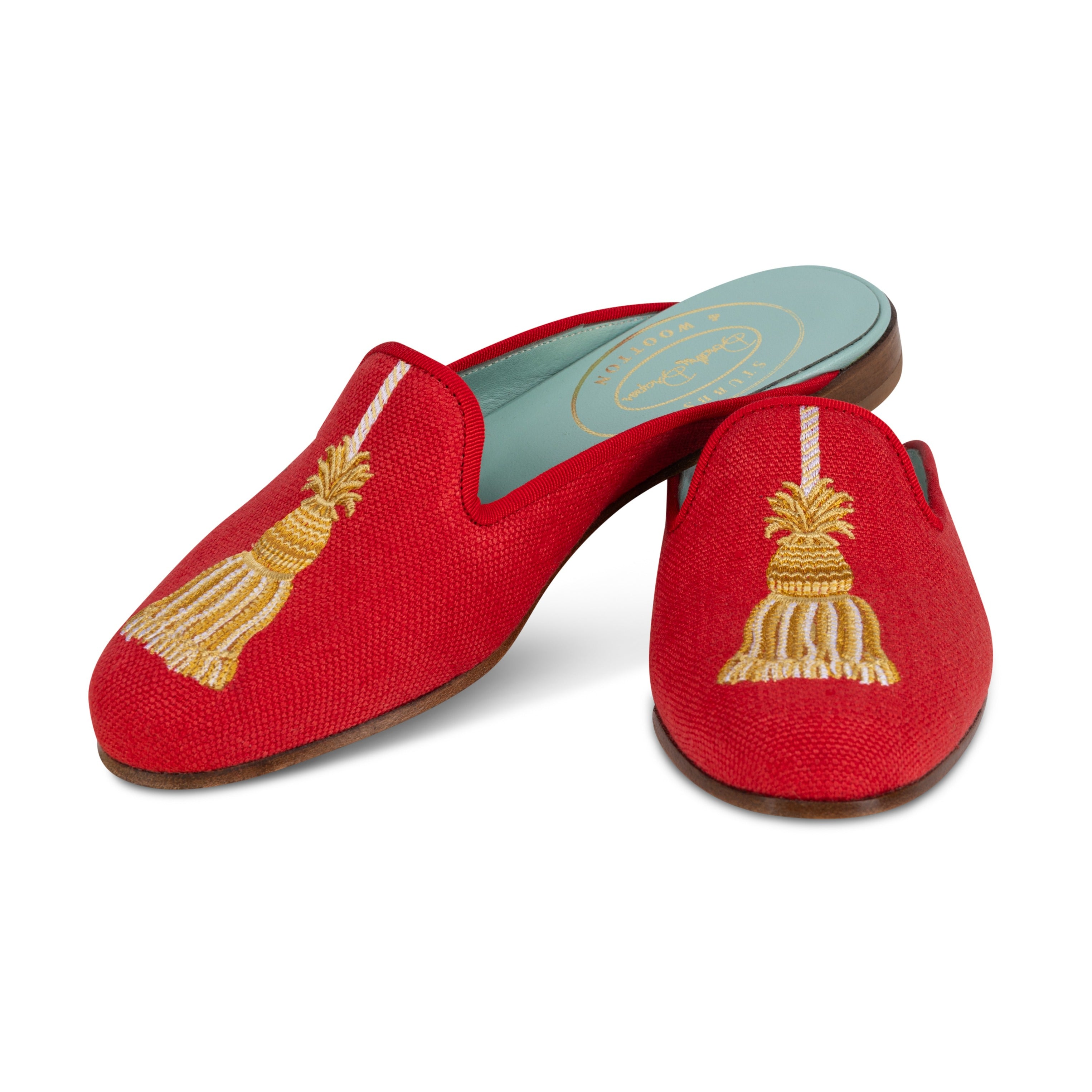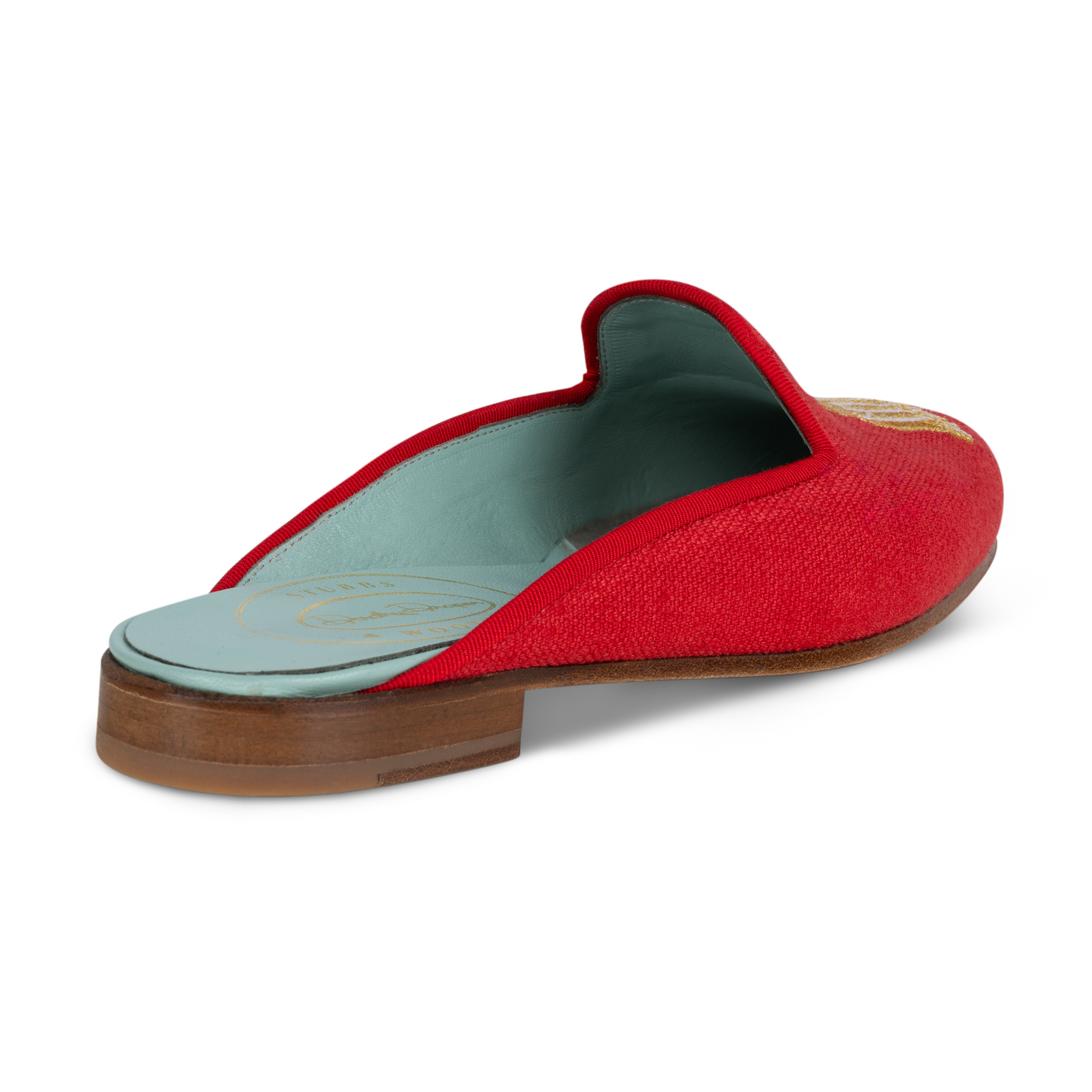 Our latest collaboration with Dorothy Draper features bold, iconic motifs in saturated, high-impact color.​ The Tassel Mule is crafted from small-batch–dyed Italian linen and finished with dimensional Tassel embroidery, layered in varied techniques and hues to echo Draper's signature design.