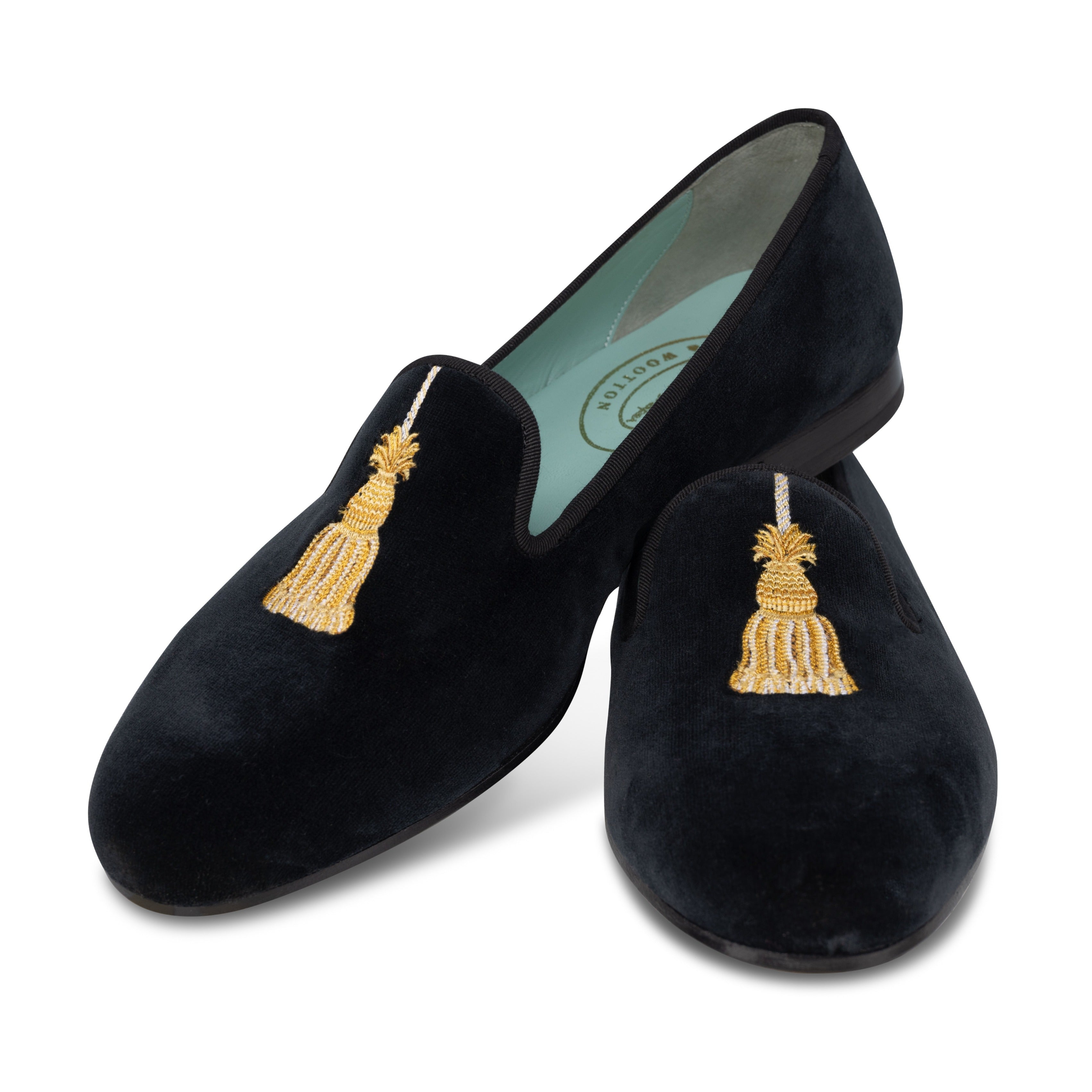 Our latest collaboration with Dorothy Draper features bold, iconic motifs in saturated, high-impact color.​ The Tassel Slipper is crafted from cotton velvet and finished with dimensional Tassel embroidery, layered in varied techniques and hues to echo Draper's signature design.