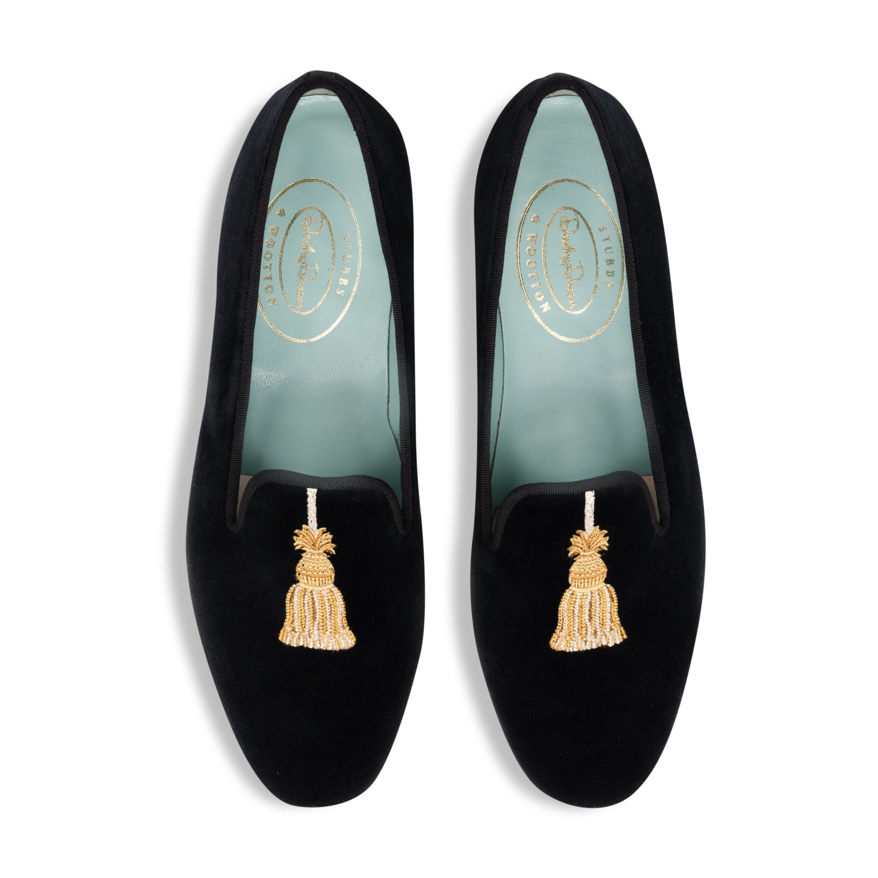 Our latest collaboration with Dorothy Draper features bold, iconic motifs in saturated, high-impact color.​ The Tassel Slipper is crafted from cotton velvet and finished with dimensional Tassel embroidery, layered in varied techniques and hues to echo Draper's signature design.