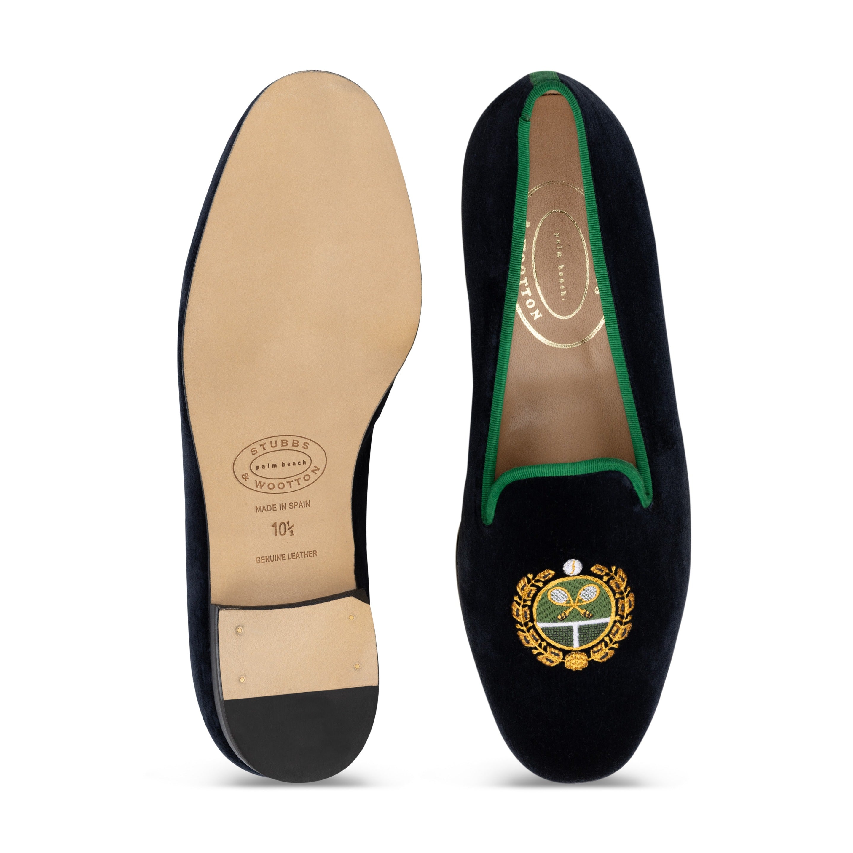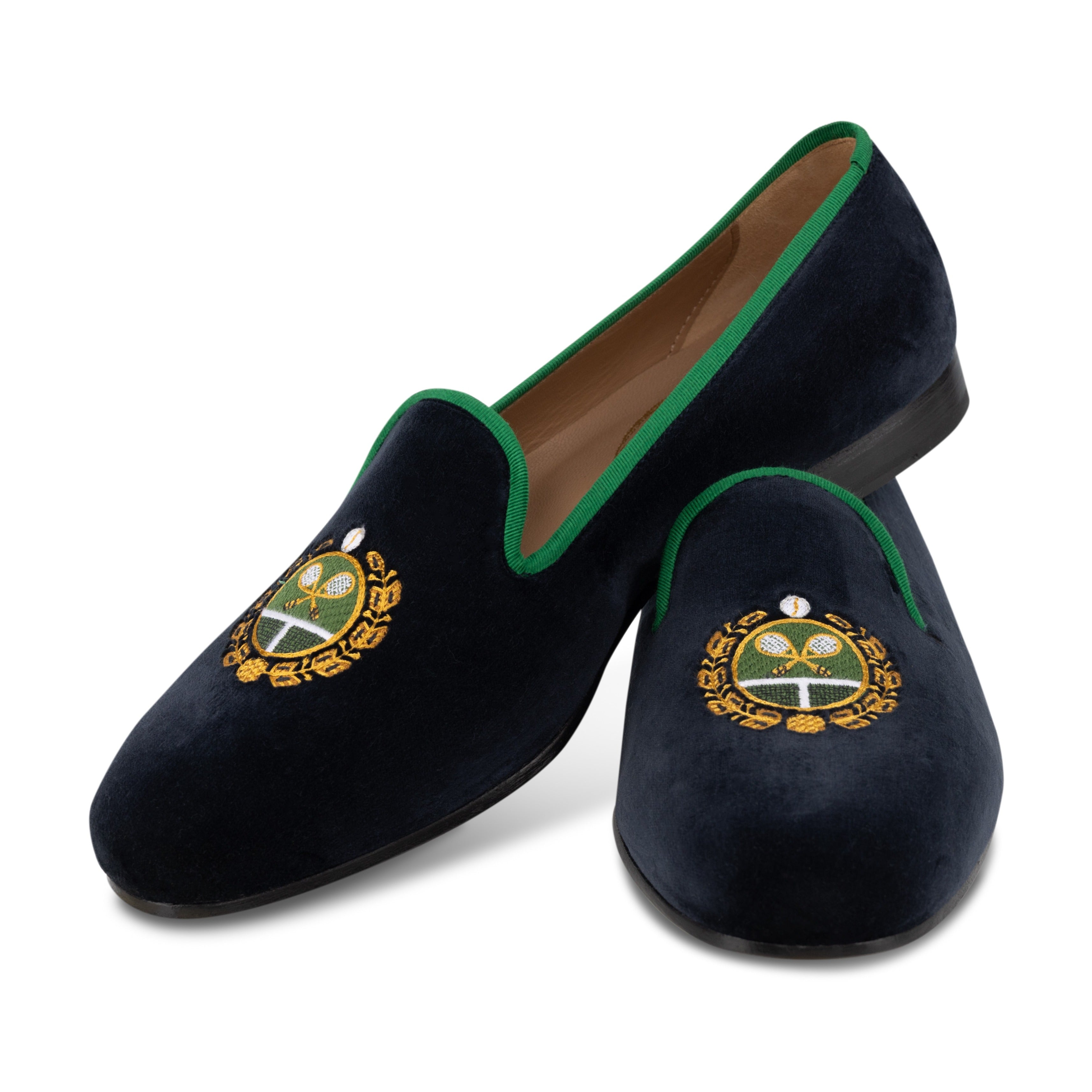 The Tennis crest velvet slipper is crafted from velvet and finished off with an ornate crest with crossed rackets.